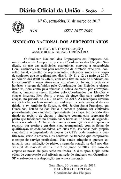 Edital de eleições sindicais