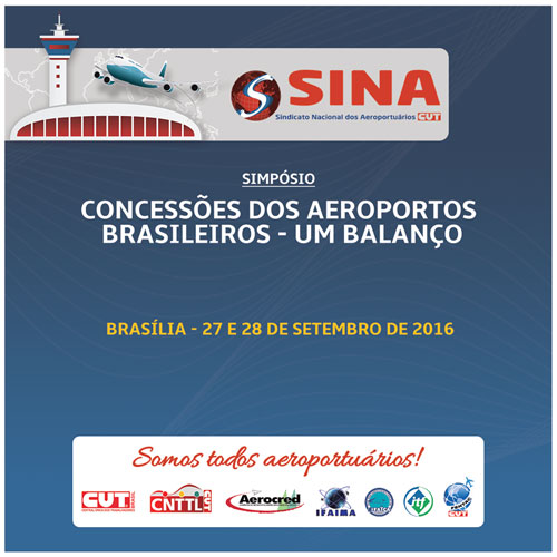 O Sindicato Nacional dos Aeroportuários (Sina) convida toda a categoria a participar do Simpósio “Concessões dos aeroportos brasileiros: um balanço”, que será realizado, em Brasília, nos dias 27 e 28 de setembro.